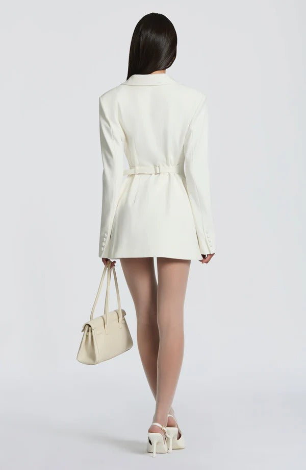 Ta blazer dress to idealne połączenie elegancji i odwagi. Wygląda jak marynarka, a leży jak mini sukienka: kobieca, stylowa i gotowa na każdą okazję. Od biznesowego spotkania po wieczorne wyjście — zawsze wchodzisz z pewnością siebie. Jeden element garderoby, który bez wysiłku podnosi Twój styl na wyższy poziom. Perfekcyjne dopasowanie, mocny charakter. Cała uwaga należy do Ciebie.