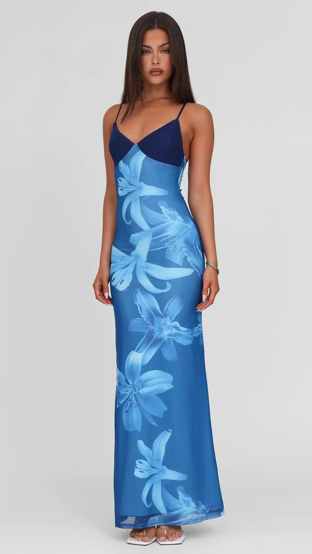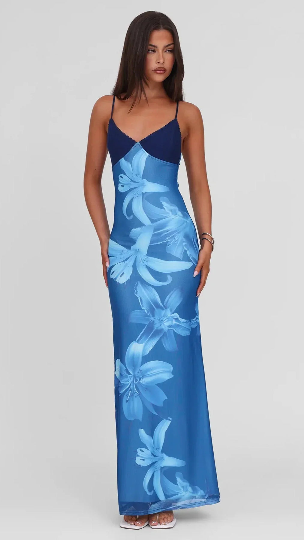 Postaw na elegancję dzięki Kalinie, oszałamiającej sukience typu slip dress, która z łatwością łączy kobiecość i wyrafinowanie. Ta zachwycająca sukienka z niebieskim, kwiatowym nadrukiem jest idealna zarówno na słoneczny dzień, jak i na wieczorne wyjście pełne uroku.